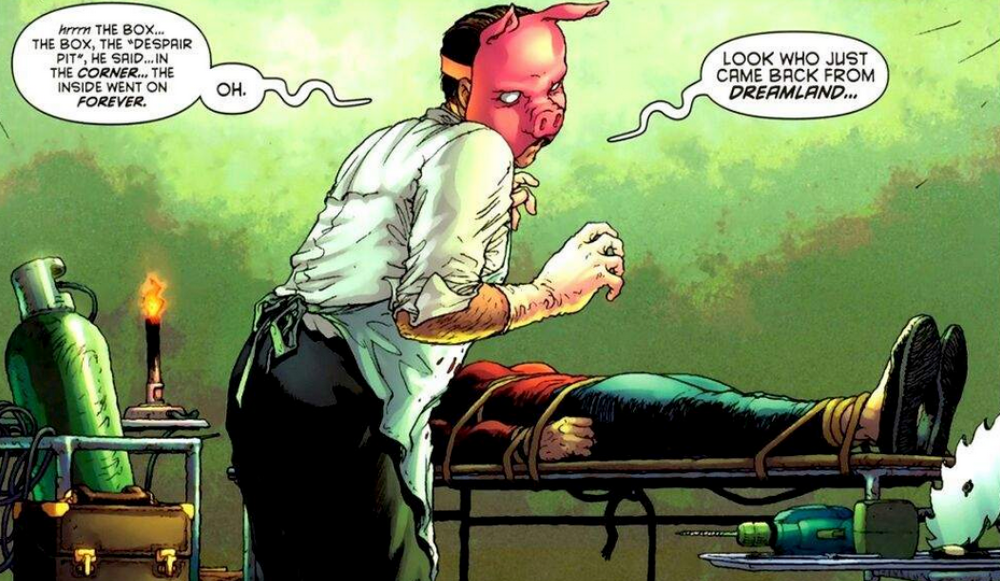Our final creeper from Gotham is Professor Pyg. Based on Pygmalion, his falling for a statue of his deceased mother, as well as having a penchant for “fixing” people, earns Pyg this spot. Whether it’s his kidnapping or torturing people into being his version of perfect, Pyg has managed to creep readers out for almost two decades now. He has returned a few times as a Batman villain and has become popular, also in part due to the video game Batman: Arkham Knight.