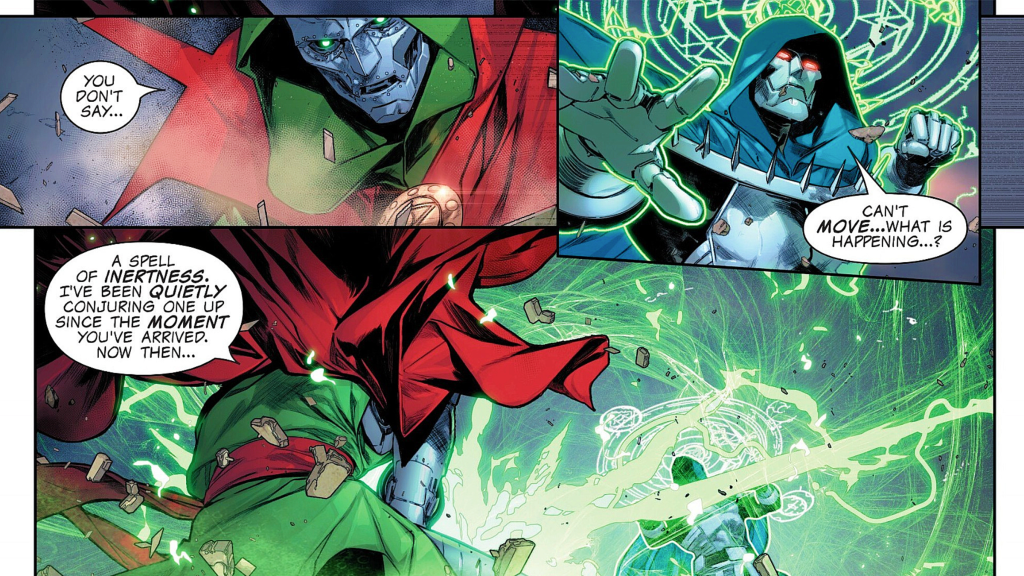 In Doom 2099, the Emperor Victor Von Doom of the current continuity is contacted by his 2099 counterpart, who demands that he cease and desist from wielding the powers of Earthโs Sorcerer Supreme. When Emperor Doom โ predictably โ refuses, a battle erupts between the present and future incarnations of Doctor Doom. Although Marvel Rivals is not mentioned in the comic, this clash is central to the existence of the Chronoverse. According to the video gameโs introduction, the Timestream Entanglement that birthed the Chronoverse was triggered by the conflict between the two Dooms: one from the current continuity and the other from 2099.