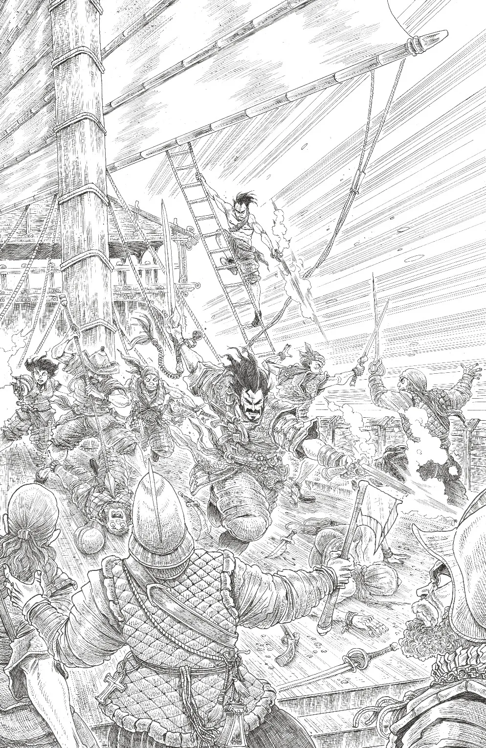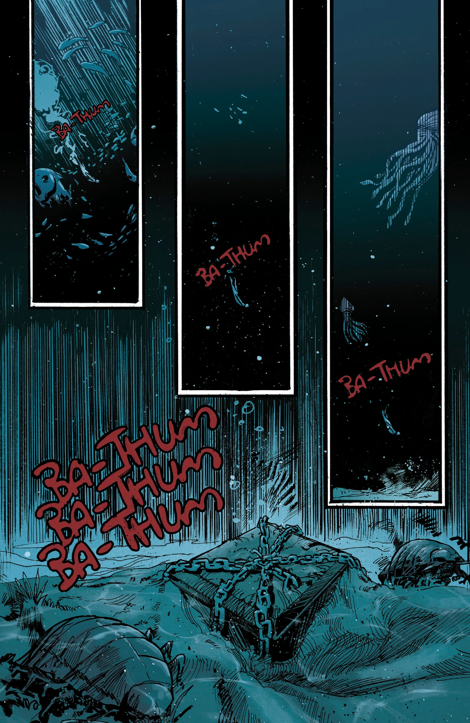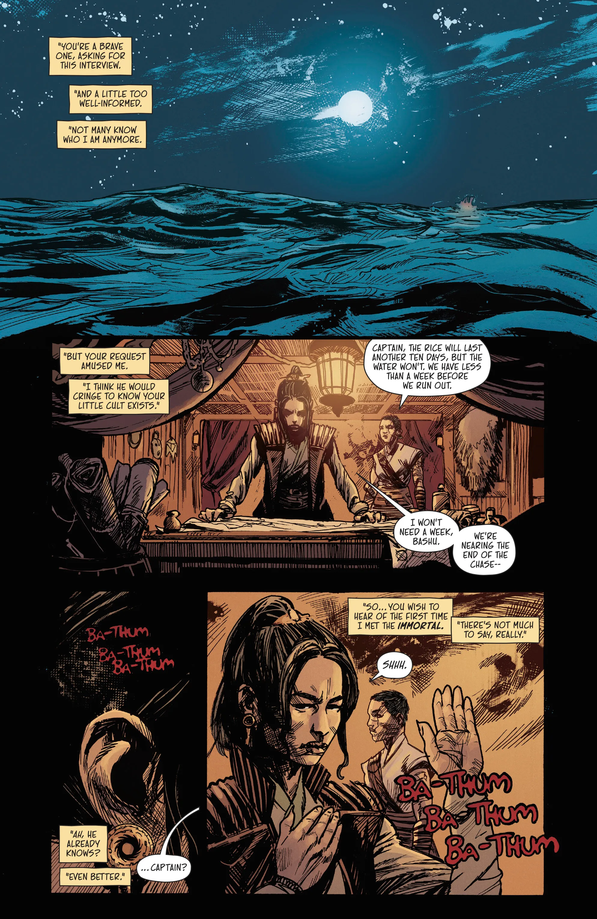 BRZRKR: The Bleeding Tide introduces fans to a pirate captain and her crew as she tries to track down a mysterious heartbeat ringing through the ship. It turns out that heartbeat lies at the bottom of the ocean in a chained container, and despite their enemies closing in, they bring the container up to the surface in hopes that whatever is inside can turn the tide.