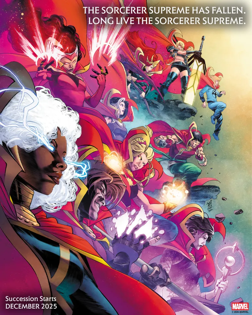 “The Sorcerer Supreme Has Fallen. Long Live The Sorcerer Supreme,” the teaser art reads. “Succession Starts December 2025.” So we at least have a timeframe for when this story arc will begin, though it doesn’t state if this is a limited series or taking place across various titles. Theoretically, one of these characters on the teaser should walk away as Sorcerer Supreme, unless Marvel tries to throw fans a curveball selection.