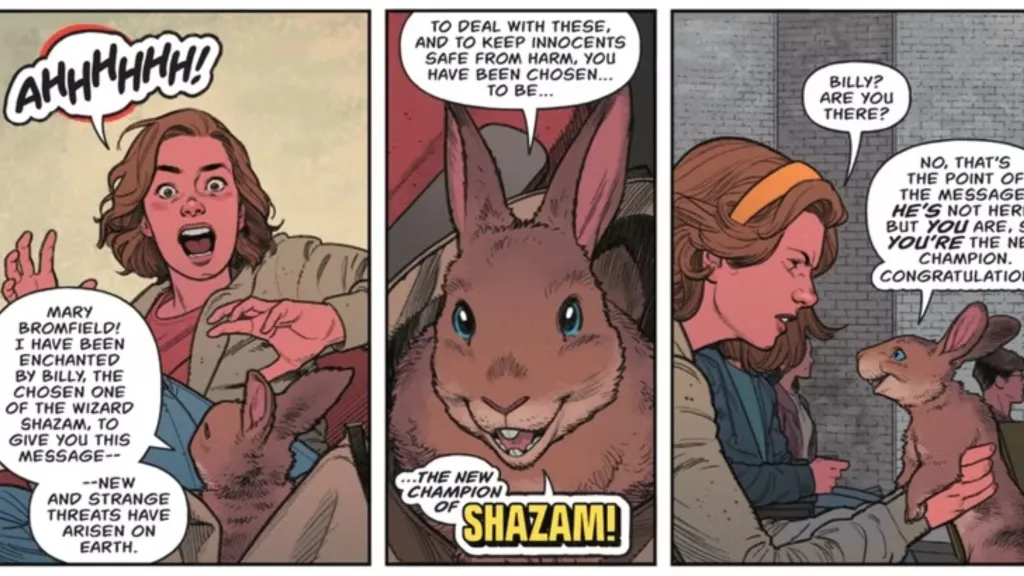 Hoppy may seem like a bit of a strange character, let alone a strange companion for Shazam. However, it’s important to remember that the Marvel Family is full of kids, so of course they’d have a pet rabbit! Truthfully, Hoppy has gone through several iterations in DC Comics. Originally, he was more of an anthropomorphic rabbit, which some fans may have understandably found disturbing.