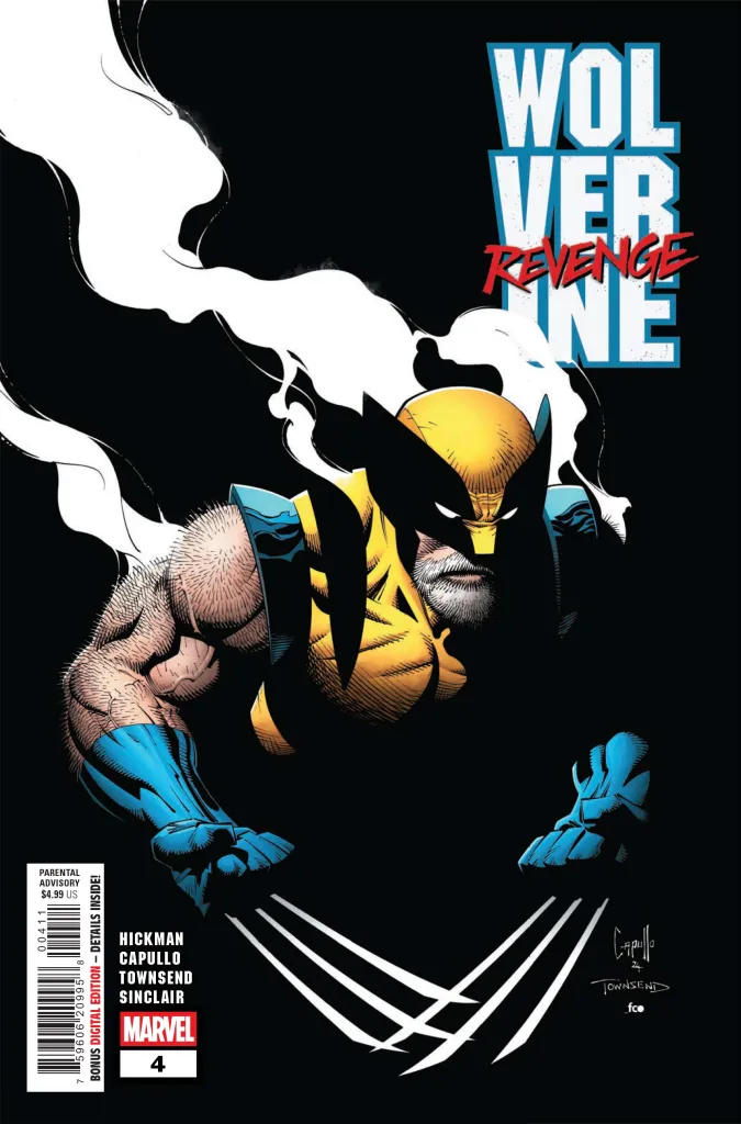 The description of Wolverine: Revenge #4 reads, “AN EYE FOR AN EYE! Time has passed since WOLVERINE’S quest for vengeance began. But as an eye for an eye escalates through the years, revenge becomes a FAMILY AFFAIR! And this is going to be one HELL of a reunion! A shocking development in Hickman and Capullo’s saga of the Wolverine that must be experienced to be believed!”