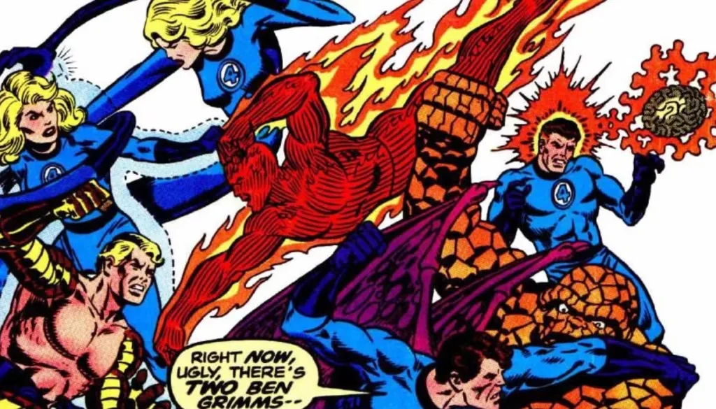 When DC and Marvel did a crossover series called Amalgam Comics, characters from the two companies were merged to create all-new heroes and villains. In this new Amalgam Universe, the Fantastic Four merged with the DC Comics team of non-powered adventurers known as the Challengers of the Unknown. This new team, the Challengers of the Fantastic, was a group of four scientists who narrowly avoided a deadly accident in space. Unlike with the main Fantastic Four, the team didn’t gain powers from this event. They became heroes because they realized that they lived on borrowed time and wanted to make the world a better place with the second chance that they have been given. The members include Reed “Prof” Richards, Red Storm, Ace Storm, and Ben “Rocky” Grimm. They use gadgets to fight crime. Rocky was turned into the rock-like monster called the Four-Armed-Thing by the villain Galactiac.