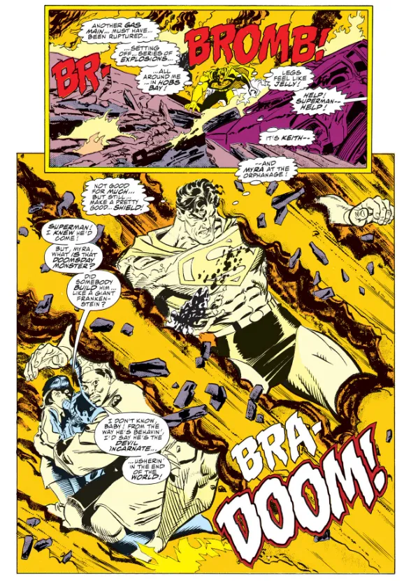 As with anything produced in the 1990s, there are always going to be elements of that era that don’t hold up or seem perhaps out of place by today’s modern standards. That’s true of Death of Superman as well, which technically begins in Superman: The Man of Steel #17, though that’s mostly setting up the other pieces on the board as Doomsday attempts to escape his cell. That finally happens in Superman: The Man of Steel #18, and from there on the story hits the gas and never looks back as Doomsday obliterates everything and anything in his path.