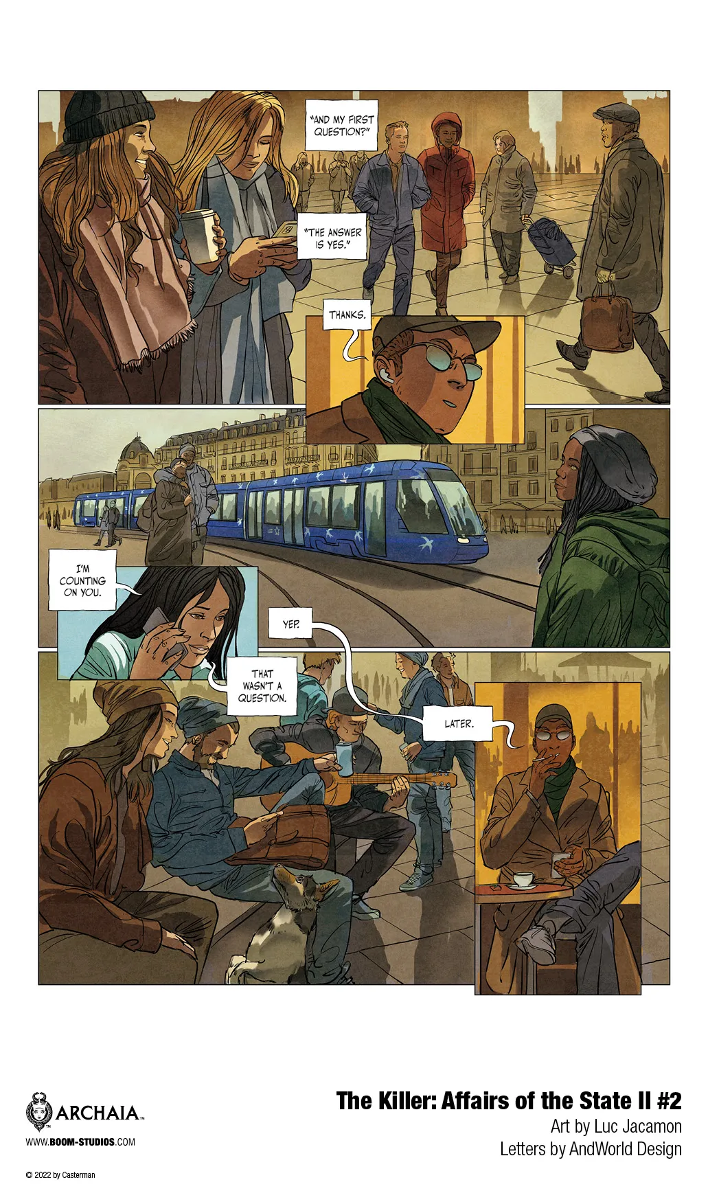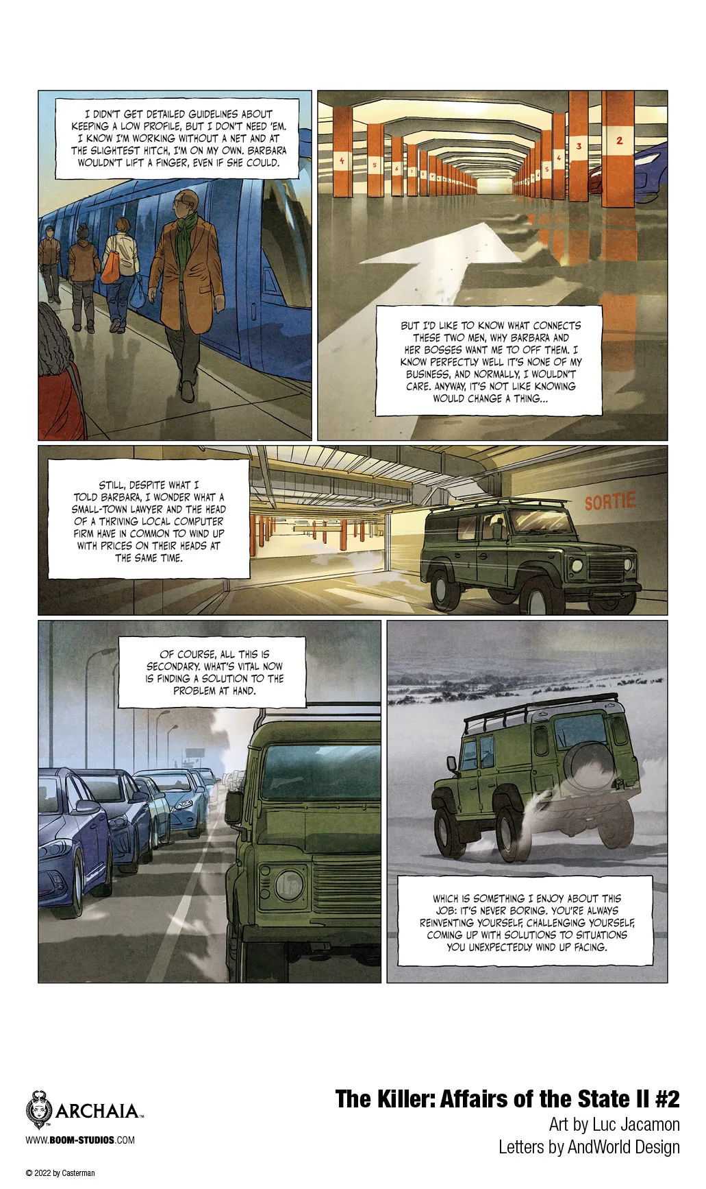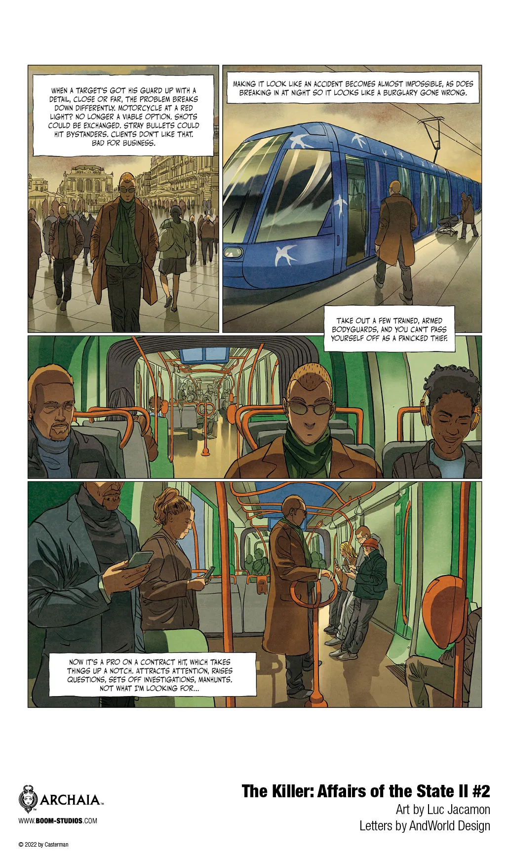 It’s all part of the web of intrigue spun by writer Matz, artist Luc Jacamon, letterer AndWorld Design, and translator Edward Gauvin. The original crime saga inspired David Fincher’s feature film, and with Affairs of the State II #2, we see some of the same cinematic flair as readers follow the Killer’s evolving process in taking down his target.