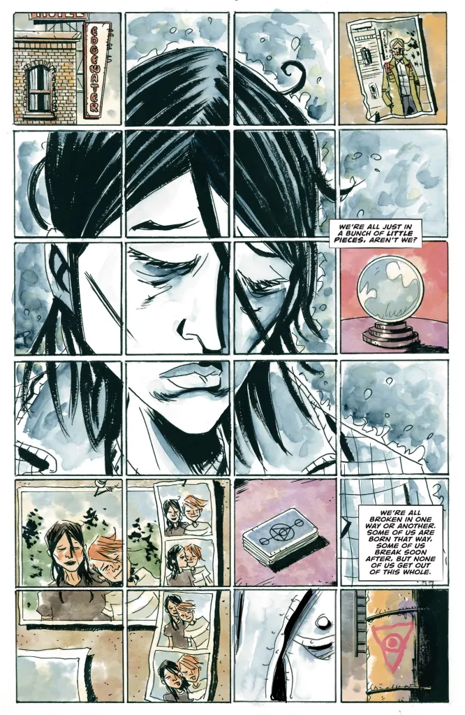 One of the things that has been interesting about Minor Arcana is that it doesnโ€™t shy away from Theresaโ€™s flaws. It makes her a relatable character for readers and makes the whole bookโ€™s overall story about a young woman coming back to her hometown at a crossroads all the richer and engaging โ€” and as Lemire has previously said, Theresa can be her own worst enemy, though her journey is about so much more.