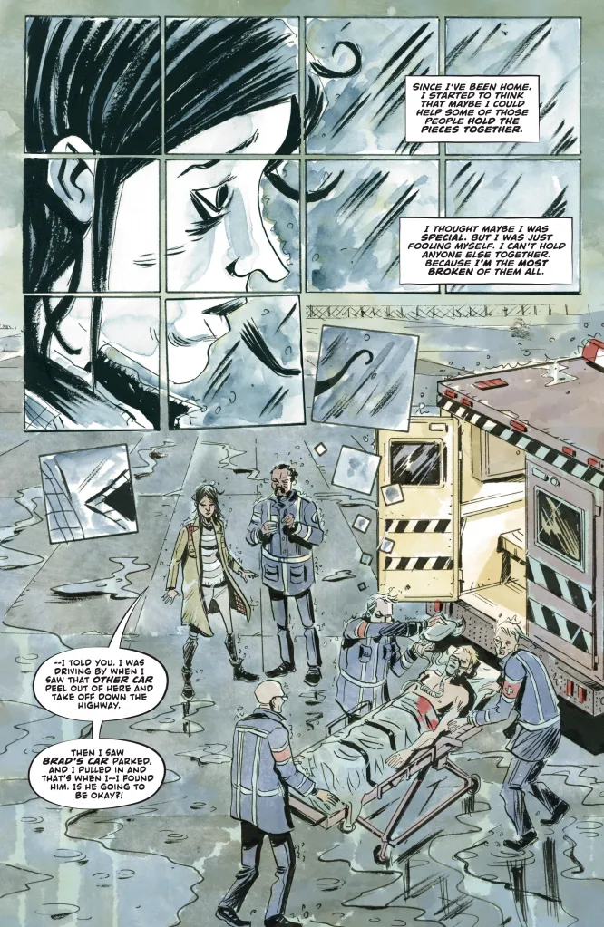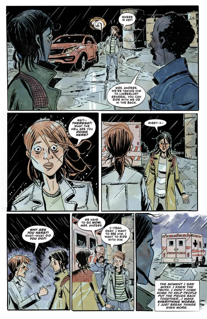 As you can see in the first look images, the weight of everything is finally taking its toll on Theresa and now itโ€™s more personal than ever. Something awful has happened to Missyโ€™s husband and now Theresa is doubting that she was ever the person to help hold things together โ€” and is even going so far as to think that she might be the most broken person of them all. Itโ€™s a gut punch for readers, both in seeing Theresa suffer as well as the realization of what it might all mean.