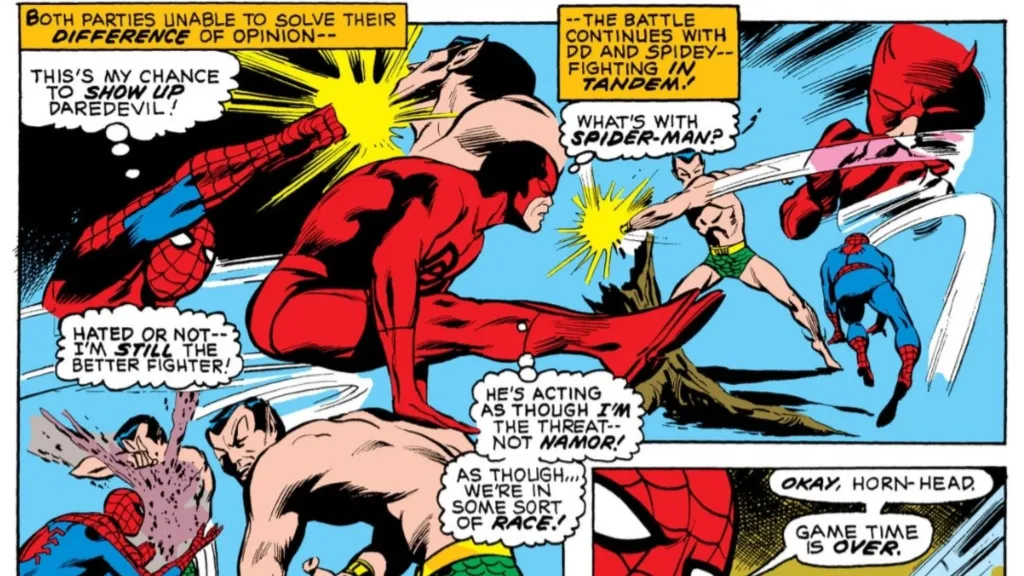 If that plot sounds confusing to you, don’t despair as this is really a Namor-centric story (the plot continues in Sub-Mariner #40, which is why this issue ends on a cliffhanger). Still, Marvel Comics loves their superhero misunderstandings that involve pitting them against each other in a knock-down-drag-out fight that could’ve easily been avoided. The fight between Daredevil, Spider-Man, and Namor is worth the price of admission alone, especially since it ends with an alien taking off with Namor, leaving Spidey and Daredevil to just casually go about their lives.