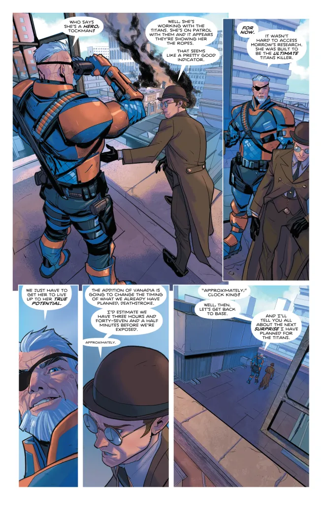 “The Judas Contract” has been adapted several times, appearing in cartoons like Teen Titans and the Teen Titans: The Judas Contract animated movie. Whenever it’s Deathstroke vs. the Titans, “The Judas Contract” comes to mind. He’s forming a team to go against the Titans, with Clock King one of the early members. If he has his way, Deathstroke will be able to count Vanadia as well.
