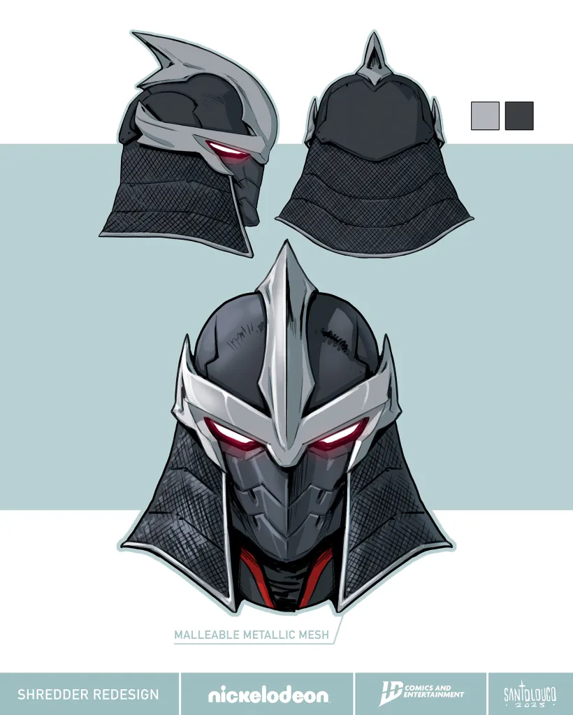 “Shredder is without a doubt my favorite villain in the TMNT lore and also a huge part of my professional story with the Turtles. So, obviously, I was thrilled with the opportunity to go back to the character and create a new look for his return to the IDW comic run,” Mateus Santolouco said.