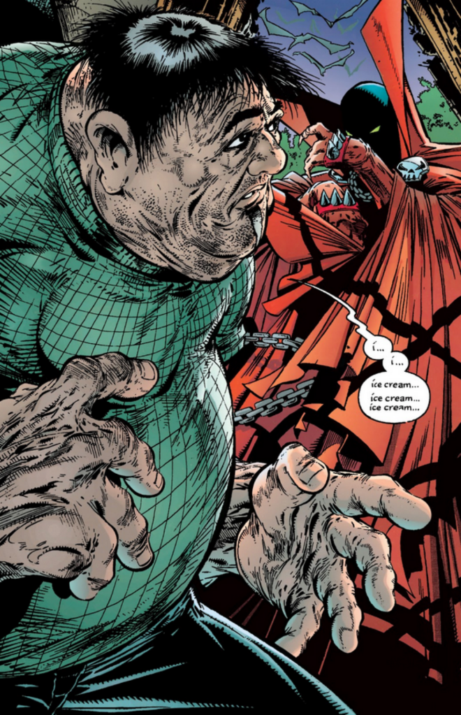 Mister Chill-ee was outfitted with his own parasitic suit by the demonic Vindicator when he was sent to the Eighth Sphere of Hell, where the murdering pedophile was slain by Spawn a second time in 1996’s Spawn #53. The blood-chilling serial killer would return as a ghost serial killer in 1999’s Spawn #80-85, and died a fourth and seemingly final time in 2005’s Spawn #152.