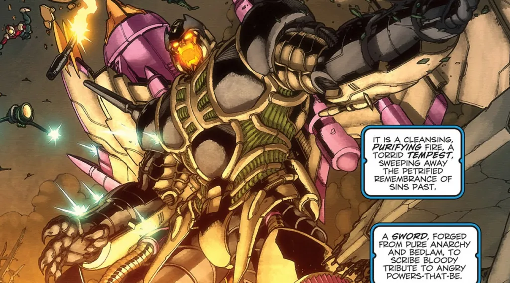 First appearing in Marvel’s Generation 2 comic line, Jhiaxus served as the series’ over-arching villain. Jhiaxus is a merciless warlord. He was born as part of a unique “next generation” of Cybertronians.  He felt that this made him and his kin superior to both the Autobots and the Decepticons. With a vehicle form of a jet, Jhiaxus had the ability to fly at high speeds and bombard his enemies with missiles. Jhiaxus led his brethren on a ruthless crusade to create a new galactic Cybertronian empire. It took the combined might of the Autobots and the Decepticons to defeat the tyrant. The Generation 2 series didn’t have good sales, and the villain’s name is literally a pun on “gee, axe us.” Still, Jhiaxus has remained a popular character among many fans and has been included in some of IDW’s comics.