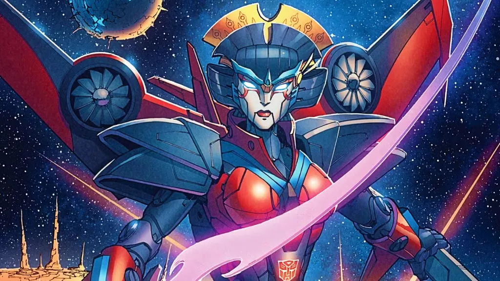 Designed as part of a “fan-built bot” contest, the female Autobot Windblade first appeared in IDW’s Transformers comic line as a kind and idealistic warrior. She can transform into a VTOL jet, and her robot form has a unique Japanese kabuki aesthetic that helped distinguish her. Windblade is an expert swordswoman and can generate powerful gusts of wind with her wing turbines. Her most distinctive ability, however, is that she is a “Cityspeaker,” which allows her to telepathically communicate and bond with gigantic city-sized Cybertronians like the Autobot Metroplex. Windblade became a breakout character and has had significant roles in TV shows such as Transformers: Robots in DisguiseTransformers: Cyberverse, and Transformers: Prime Wars.