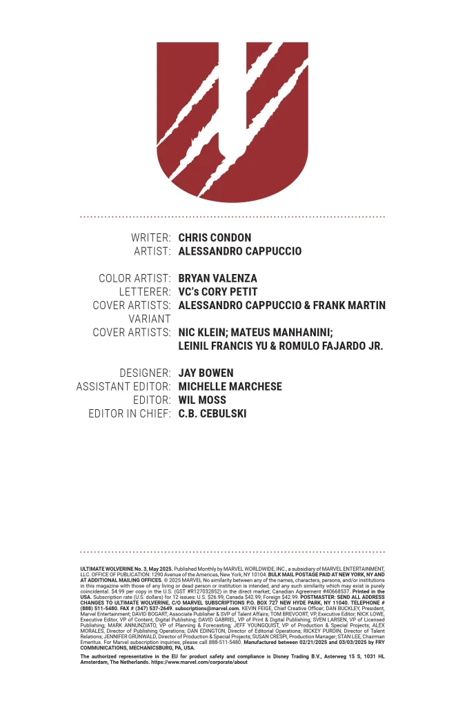 “When Wil Moss called me and asked me if I wanted to take on this title, I jumped at the chance and immediately had an idea of what to do with it,” said Condon when Ultimate Wolverine was announced at New York Comic Con. “I’m bringing my essence of storytelling from That Texas Blood to the Marvel Universe with Wolverine, looking back at what came before and bringing us something new.”