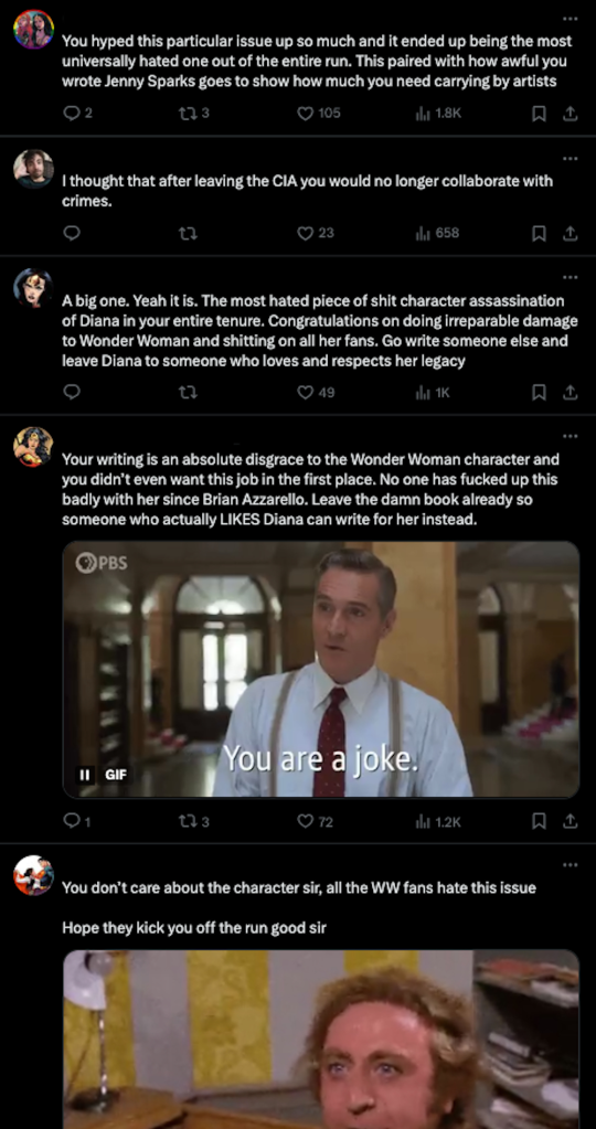 Other fans got even more dramatic, posting things like “Congratulations on doing irreparable damage to Wonder Woman… Go write someone else and leave Diana to someone who loves and respects her Legacy.” The insults only got bigger once memes got involved – and since fans who enjoy and support the issue have jumped in it’s become a hot debate within the DC fandom.
