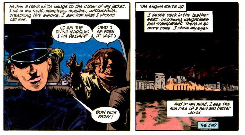 Another real-world influence on The Invisibles is also a key supporting character in the early comics issues, too. The controversial French writer and libertine, and his work, The 120 Days of Sodom, fill a key role in Morrison’s story, with parts of the fictional tale revealed to have been real. The main libertines at the center of the story all play parts in The Invisibles, and still represent the “cruelty of men.”