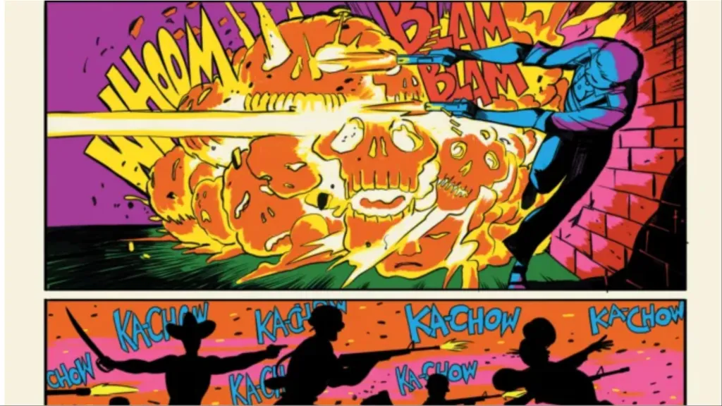 The issue kicks off with Rainbow of the Agency attacking John with psychedelic Vietnam flashbacks, a war known for its brutality and senselessness. It’s such a great way to do an action scene in a book like this, and it’s just the beginning. The Martian’s continuting interrogation talks about borders and what they mean, which is something that is heavily in the news lately. Camp’s message here is rather simple โ the United States is an imperial power that enforces its desires with violence โ and yet if you don’t get that from it (which would be hard, but not impossible; I guess if you don’t know the news and history, you wouldn’t get the subtext), you’re still going to get an amazing, action-packed yarn, with some darkness presaged for the book’s last two issues.