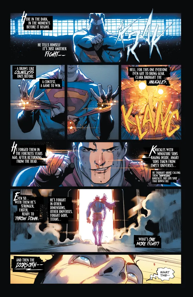 Finally, there’s an undercurrent to this story that wasn’t as publicized initially but feels unmistakable after reading the first issue. While there are a multitude of heroes and villains featured in this series, this is unmistakably a Superman book, at least in the first issue. Much of this is seen from Superman’s direct point of view or from Batman’s point of view – though, in those cases, Batman is talking directly about Superman half of the time. It fights against Superman’s very nature to not prioritize protecting others as opposed to taking others down, and yet to survive this grand-scale event, Superman is going to have to figure out how to adapt and find a middle ground, if not turn off that sense completely.