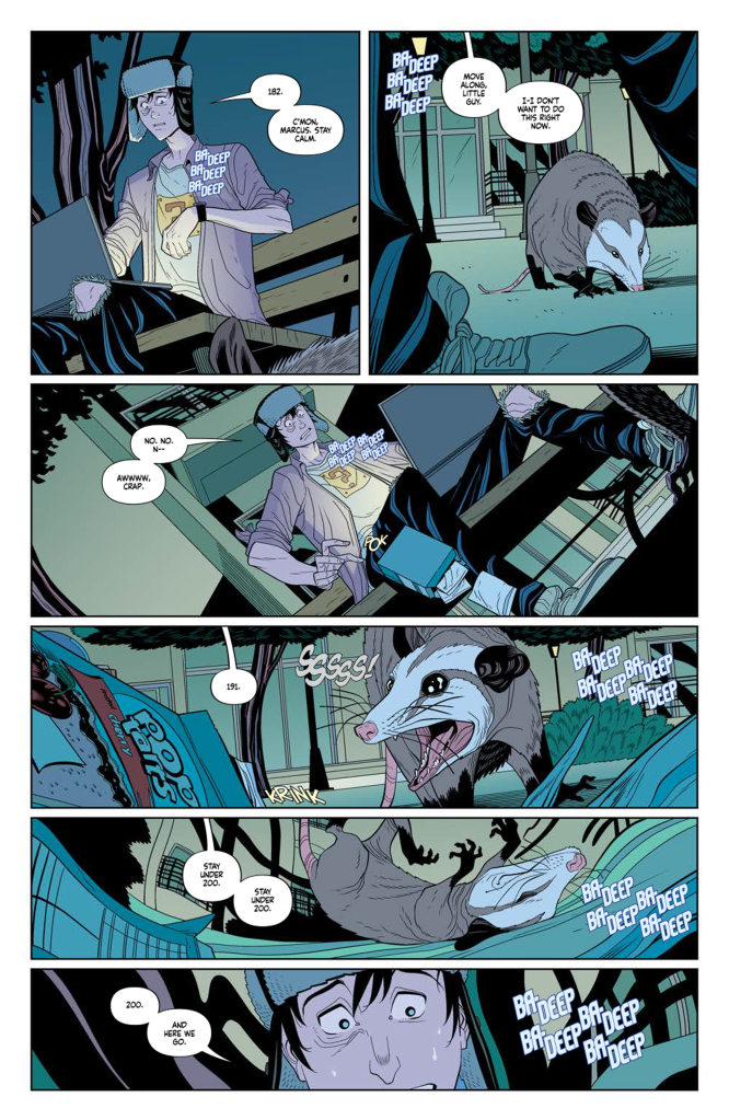 The majority of the issue is pretty much all set up. Aside from getting to know Marcus and understanding how his condition works, we only really get to know his small friend group and Jess, Marcusโs neighbor and current love interest, though heโs very withdrawn when it comes to expressing his affection for her. Jess also has some baggage from a past relationship, which only exacerbates Marcusโs condition and complicates his desires to see her romantically. And while I canโt say any more, the issue really picks up at the end with a page that advances the story forward considerably.