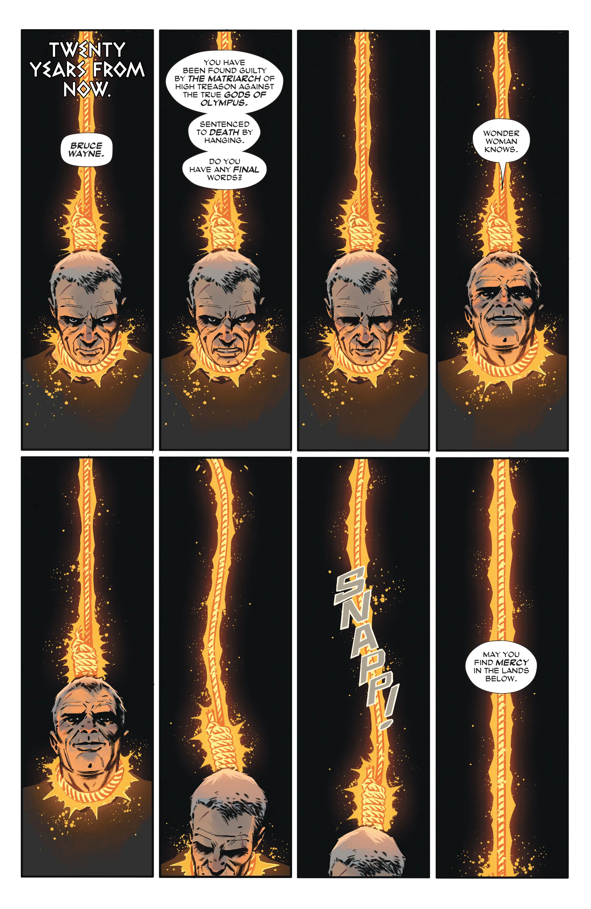 Wonder Woman #25 is primarily taking place in two different time periods, with one occurring in the present and the other happening 20 years in the future. King, Sampere, Tomeu Morey, and Clayton Cowles begin with quite the visual, and it can’t help but hook you into that future timeline instantly. That continues to play out in small flash forwards that seal the fates of much of the Justice League while establishing that it will all come down to Wonder Woman once more, and that’s been a hallmark of this run from the very beginning.