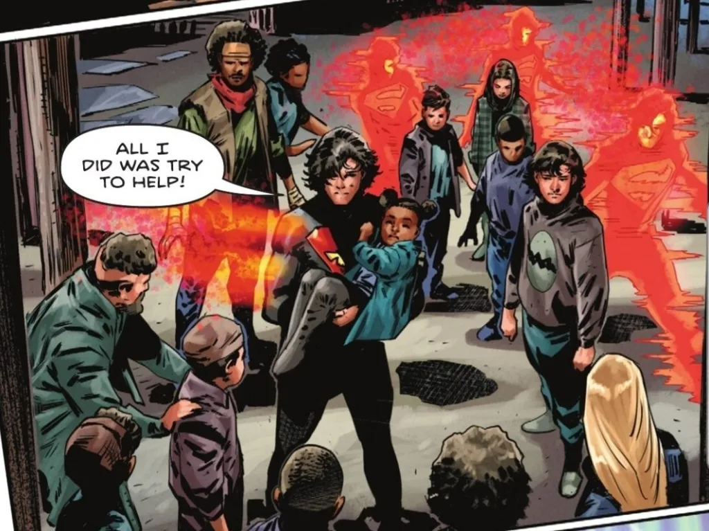 In the years since, Kal has made a home on Earth, and we quickly see that he’s pretty conflicted about it. In the original origin, Kal grew up on Earth and thus developed an appreciation and love for Earth and those who live there. This time that doesn’t seem to be the case, as Kal roams around from place to place helping people but has also clearly seen the darker side of humanity. The few conversations he has with others reveal humanity hasn’t exactly made the best first impression.