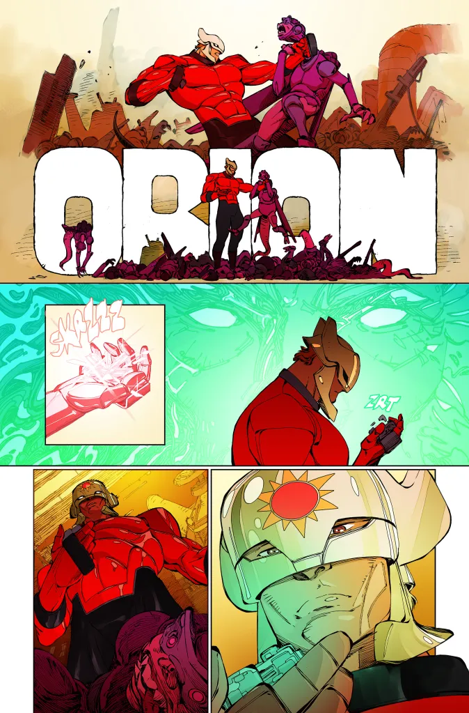 “I do really enjoy them all. I think, for me, part of the excitement of the book was to have this kind of big cast of characters. And I love that part of the storytelling that happens just before the conflict where you kind of start seeing, Where all the chess pieces sit on the board and how they got there,” Ram V said. “And so that has been a bit of a joy for me, but of the more popular ones, of course, writing the conflict and brotherly issues between Orion and Mr. Miracle has been particularly exciting.”