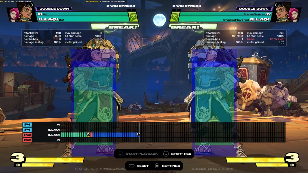 Practice mode is also incredibly robust no matter if players are jumping into it from the main menu or ranked queue. There are a dizzying amount of options here to toggle and move around, meaning those who want to dig into the nitty gritty are more than able to. This means players can slow down the game speed to better understand combo routes, turn on frame data, make the hitboxes and hurtboxes visible, and set exactly what frame the CPU guards on, to name a few.