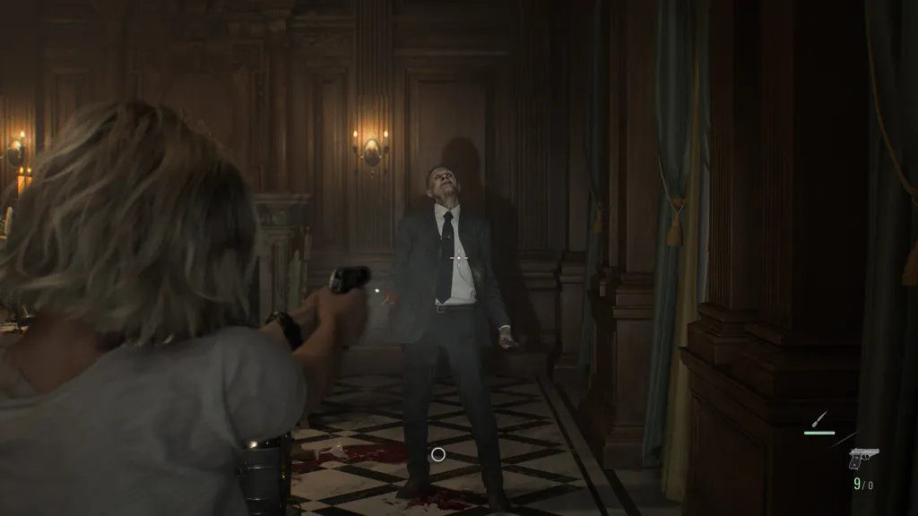 The limited perspective can also make it a little harder to keep an eye on threats. This isn’t as much of a problem for Grace since she always faces fewer zombies and is often incentivized to run away from bigger hordes, but Leon almost always tackles more than a few undead at once in open arenas. It’s not quite as easy to quickly swivel the camera around in first-person and keep an eye on what needs to be shot or parried.