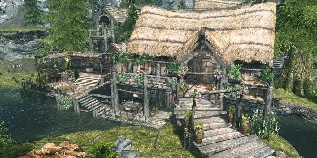 There is no point in adventure and looting if a player has nowhere to relax and store all their treasure. Leaf Rest gives players a quaint house at Riverwood, giving access early to gamers. The key to the house is obtained for free at the mailbox.