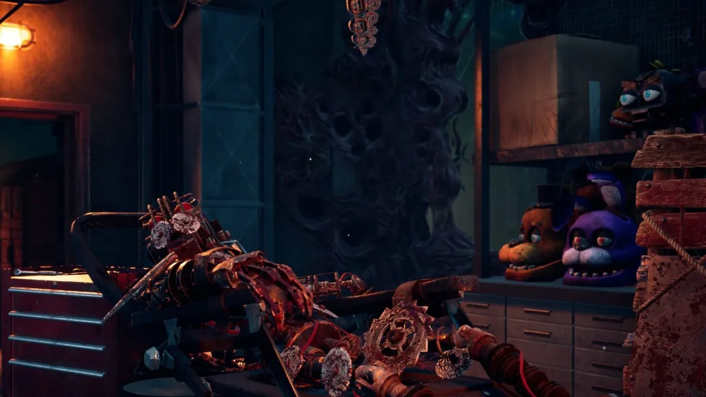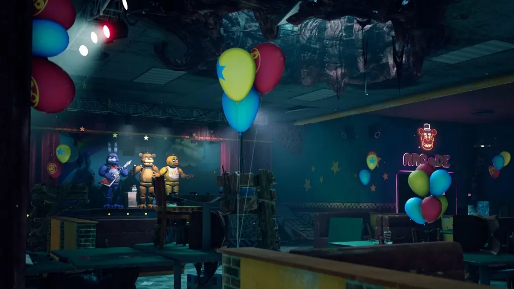 Springtrap may be the killer, but he’s not the only animatronic in town. Early teasers show Freddy Fazbear, Bonnie, and Chica standing ominously on stage. While they’re not playable, the fact that they’re included at all has us watching closely.