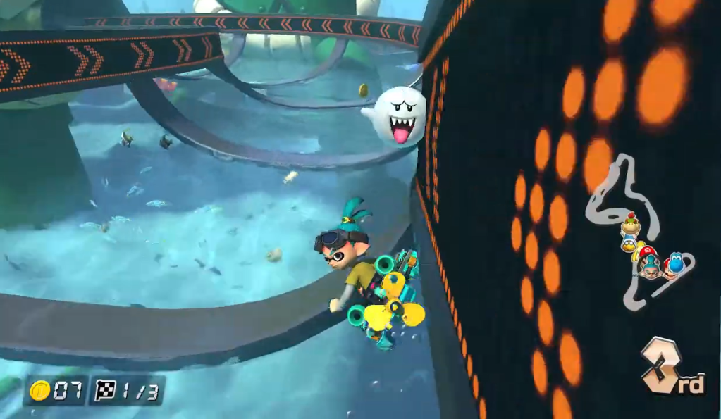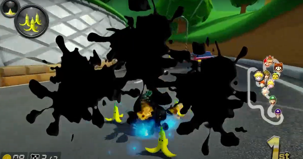 No one likes the Blooper. It’s not fun and not even that effective at what it does. The ink splatters are random, so sometimes it doesn’t cover enough of the screen to hinder racers. Furthermore, it really only hurts players, not the AI racers. If Nintendo wants to keep the Blooper, because it is an iconic enemy, then it should change to throwing ink splotches on the ground. These could slow down other drivers, or maybe even the player, if they drove through them. The ink splotches could have a timer and disappear after a certain time, unlike the current Blooper effect which needs to go away for good.