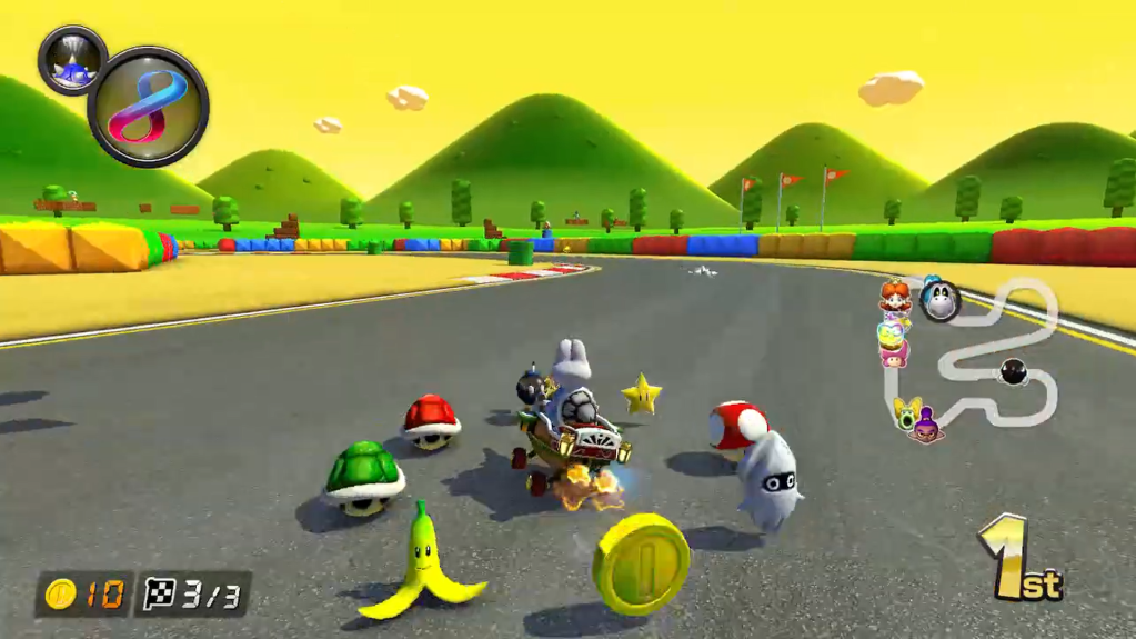The Star is an iconic item in Mario Kart and in Mario games. But its last appearance in Mario Kart 8 Deluxe is underwhelming. The amount of time it lasts is far too short, and the speed boost is so negligible, it is better to get a Mushroom. Now, the Star shouldn’t be removed from Mario Kart 9, but it certainly needs a buff. So many Mario games put stars as the penultimate item, so it needs to feel meaningful in the next Mario Kart.