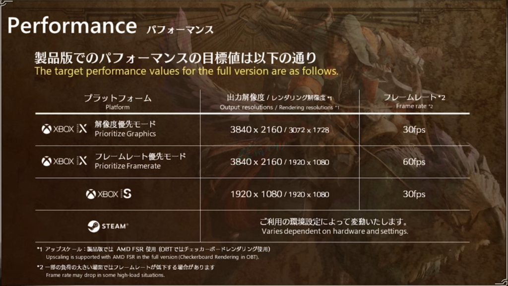 For those playing on the Xbox and PlayStation platforms, a chart was also shared during the community update which showed what performance will look like on those consoles. Those on the Xbox Series S will always be playing at 30fps while the Xbox Series S will sometimes only manage that as well if you’re prioritizing graphics instead of performance. A separate section of the video addressed the new PlayStation 5 Pro and how it’ll handle Monster Hunter Wilds.
