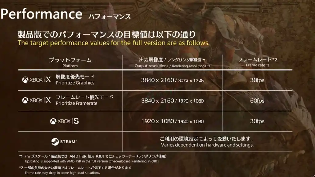 Alongside the information for Monster Hunter Wilds on PS5 Pro, Capcom revealed the specs players can expect on Xbox Series X, Xbox Series S, and PC. Players can expect similar settings with Xbox Series X, having the option to prioritize graphics or framerate. Those on the Xbox Series S will not have the option of being locked into a single available setting.