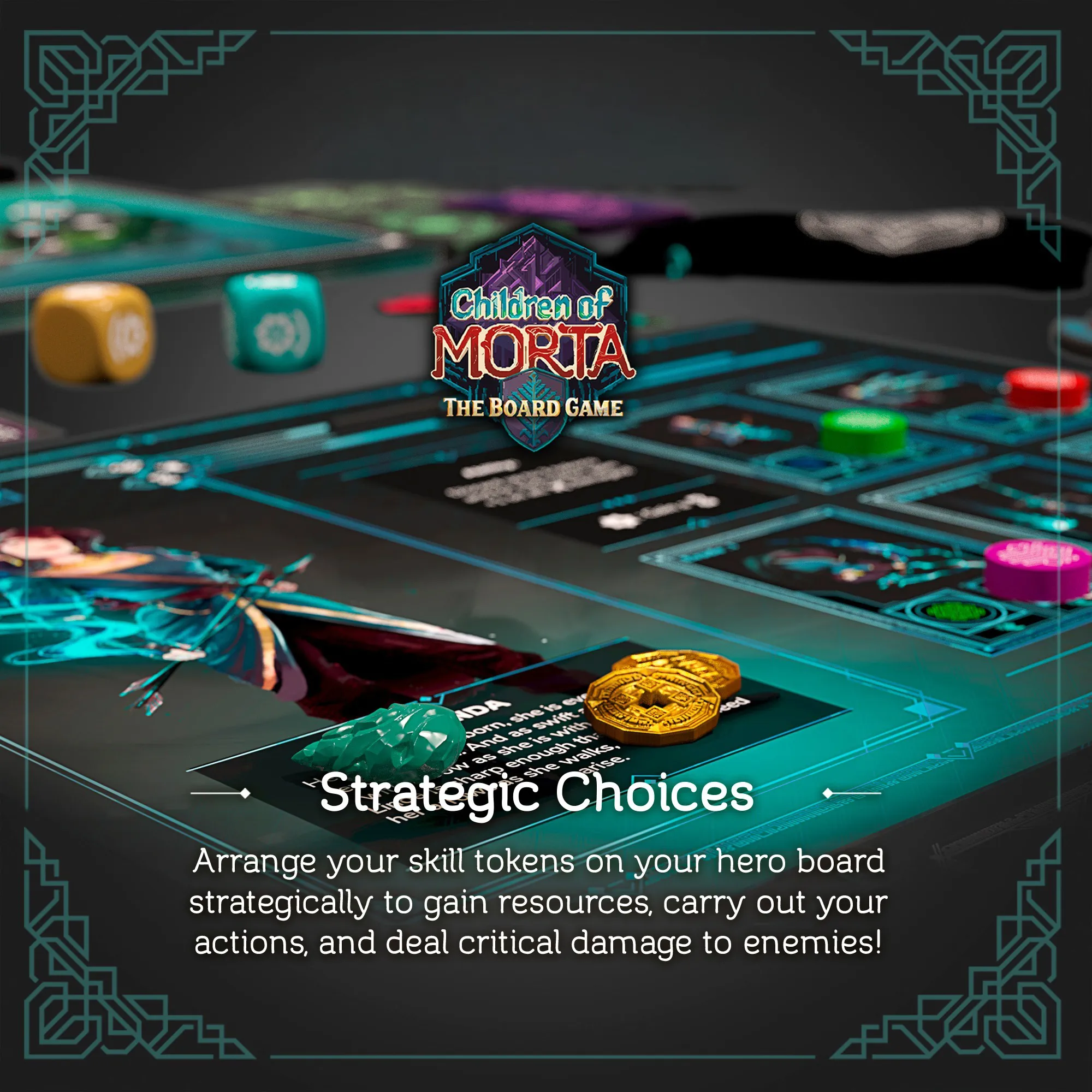 In Children of Morta: The Board Game, you’ll explore the realm of Rea and attempt to discover the source of the corruption so you can heal the land. To do so, you’ll choose from a set of different heroes just like in the original game, and each one will have their own play style and a host of abilities. There’s also a layer of strategy in how you utilize your skill tokens on your character’s hero board, but the game really shines in the cooperative play.