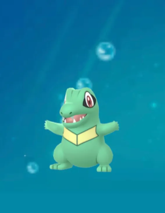 The Shiny version of Totodile features a brighter coloration than the standard. Rather than the usual blue, Shiny Totodile has a shade that’s closer to a light green. Meanwhile, the spikes on Totodile’s back and tail swap the traditional pink for a dark blue, and the normal yellow on its chest gets a little bit lighter. That color scheme continues for Shiny Croconaw and Feraligatr, where the color differences remain the same, but become a little more pronounced.