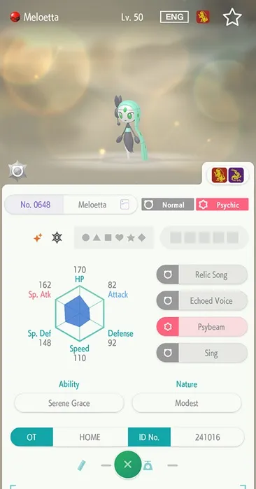 For those more inclined to actually use this Shiny Meloetta in battle and are worried about what its stats look like, The Pokemon Company also shared a screenshot of the Shiny Meloetta in the Pokemon Home app. The image below shows the version of Meloetta which is presumably the one everyone will be getting — a Level 50 Pokemon that knows Relic Song, Echoed Voice, Psybeam, and Sing with a Modest nature and Serene Grace as its ability. Like every other Mystery Gift giveaway of this kind, the Shiny Meloetta will come in a Cherish Ball.