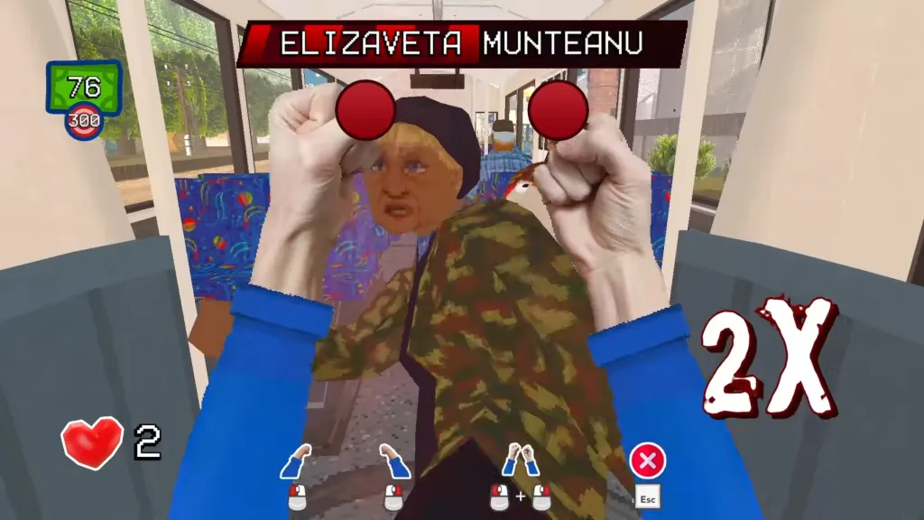Players control each hand on top of having to move, interact with passengers, and occasionally fight people. The simple act of collecting cash or pushing a mop to clean up the bus becomes much more difficult with this design style, to the point that the first few playthroughs can easily become frustrating. Luckily, the game’s sense of humor made all those little errors and mistakes funny, the ensuing chaos becoming the punchline. Sprinting up a train, kicking an old lady, and then trying to escape a perpetually smiling inspector by throwing unsuspecting travelers at him is a lot of fun, at least for a little while.