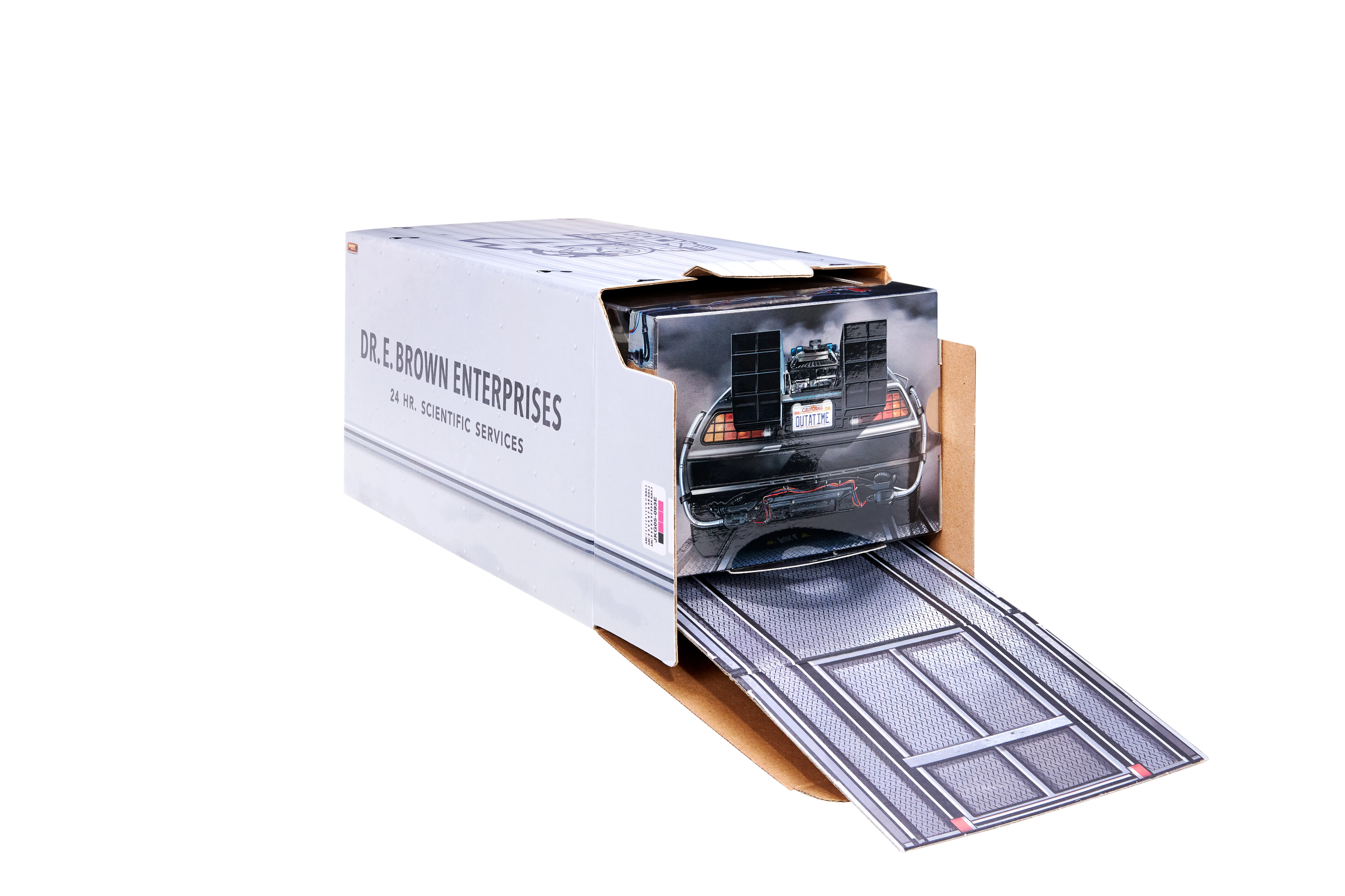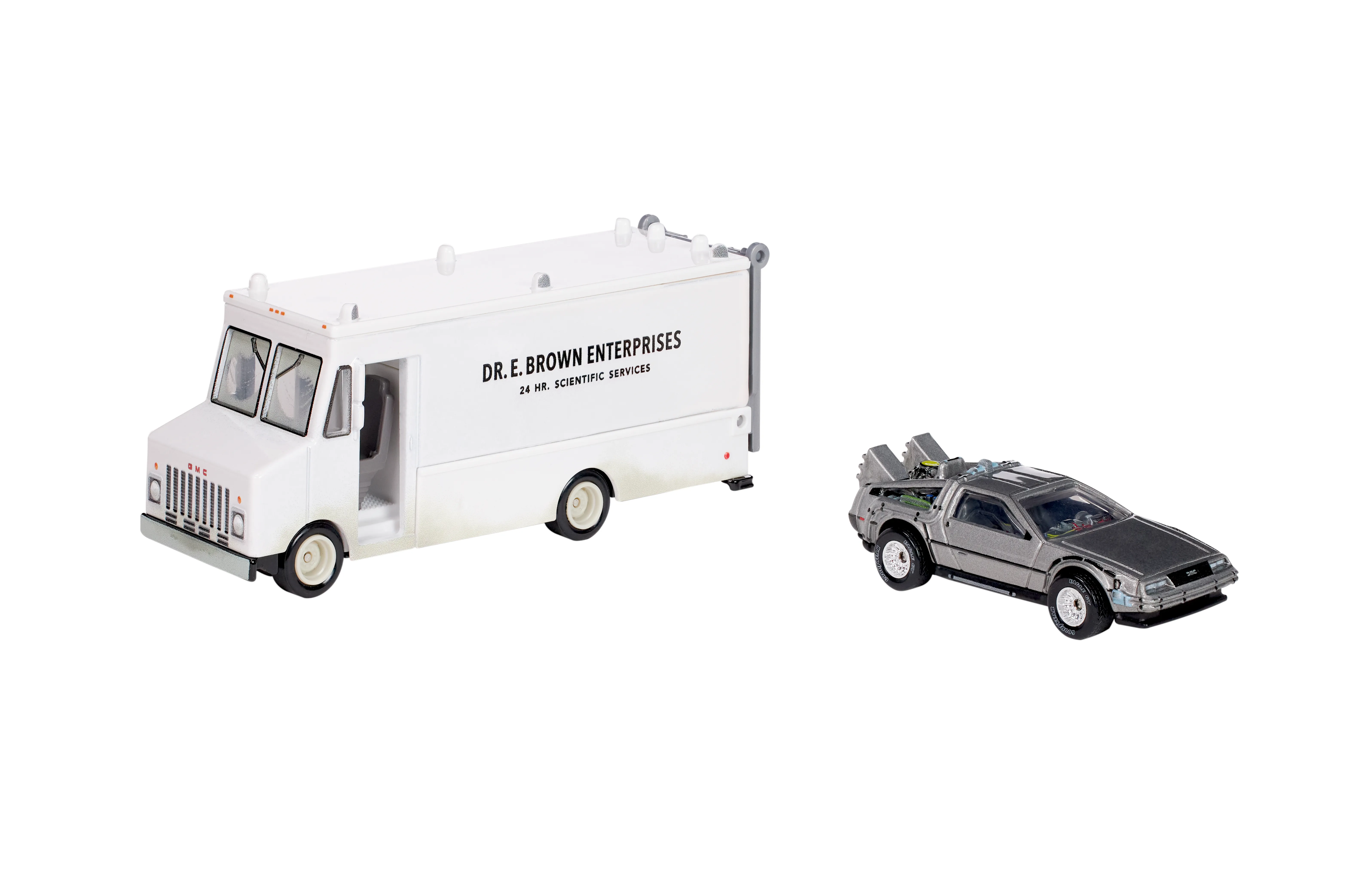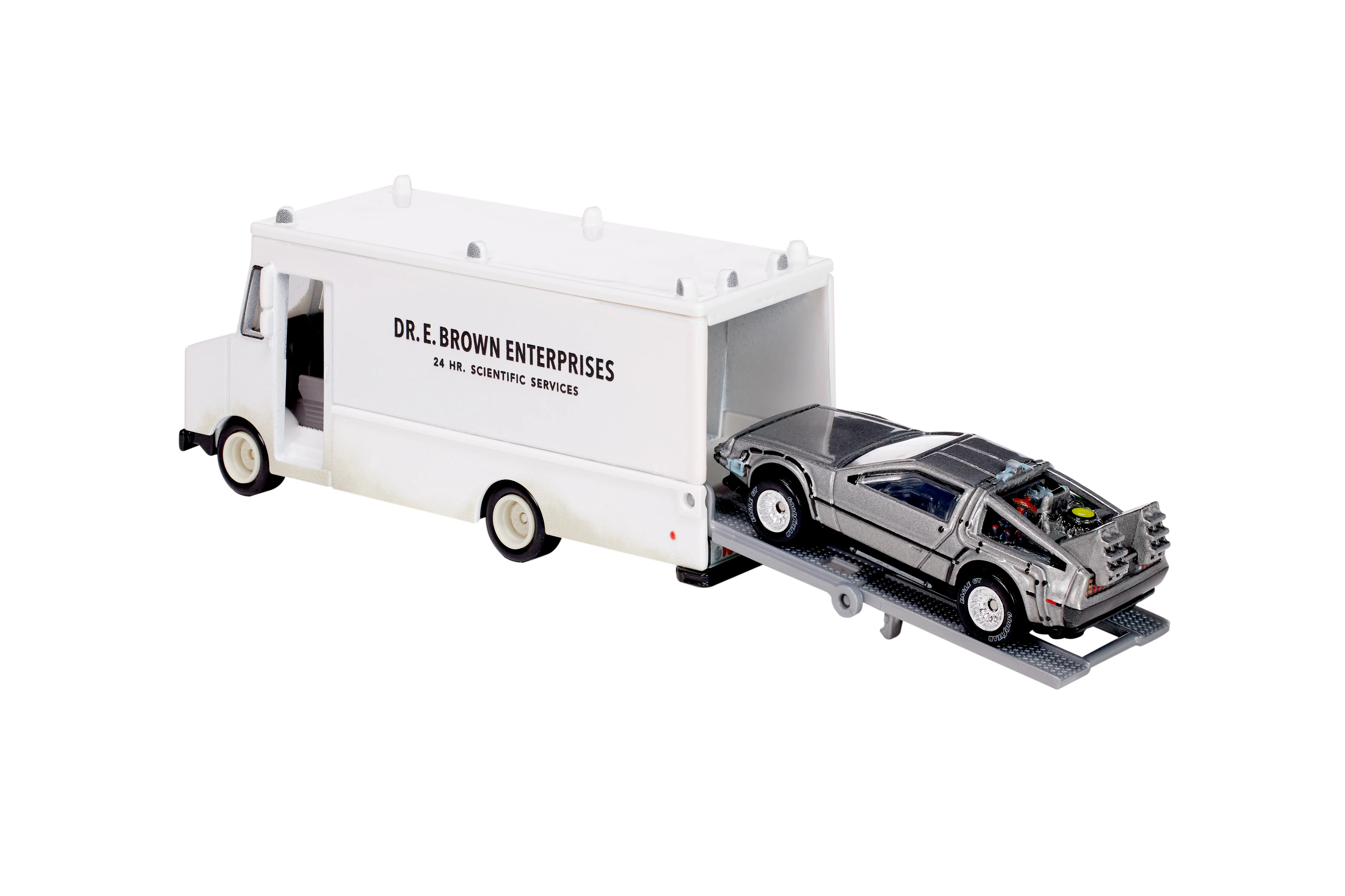 The first exclusive stems from the time travel favorite Back to the Future, which is receiving a 40th anniversary set courtesy of Hot Wheels. The Hot Wheels set will bring the film to life with a die-cast diorama that comes with both the Dr. E. Brown Enterprises 24 Hr. Scientific Service truck and the DeLorean that can be rolled in and out with a ramp. The box and background are all based on the scene at Twin Pines Mall, and the box is all themed after the Flux Capacitor.