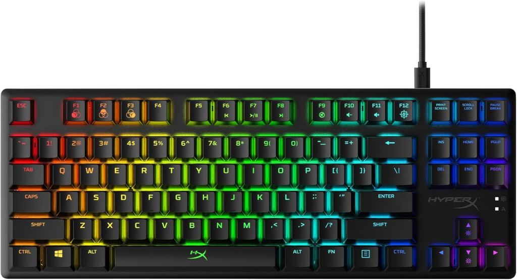 HyperX’s Alloy Origins Core has been a consistent performer in the mid-range space. The custom mechanical switches provide excellent gaming response, the TKL layout is perfect for FPS gaming, and the build quality feels rock-solid. The braided cable and detachable design make it travel-friendly, and the simple, no-nonsense aesthetic ages well.