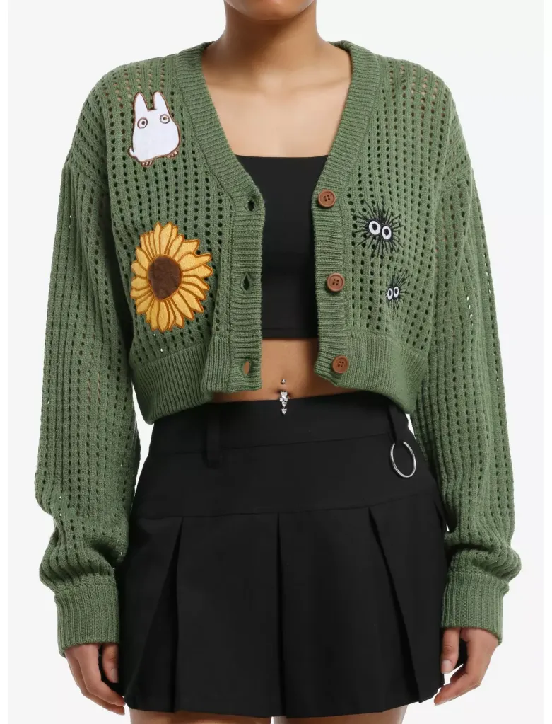 - Her Universe Studio Ghibli My Neighbor Totoro Open Knit Girls Crop Cardigan – $54.90 – $59.90 – Order here from Hot Topic