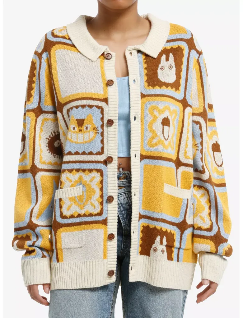 - Our Universe Studio Ghibli My Neighbor Totoro Patchwork Knit Cardigan – $54.90 – $59.90 – Order here from Hot Topic