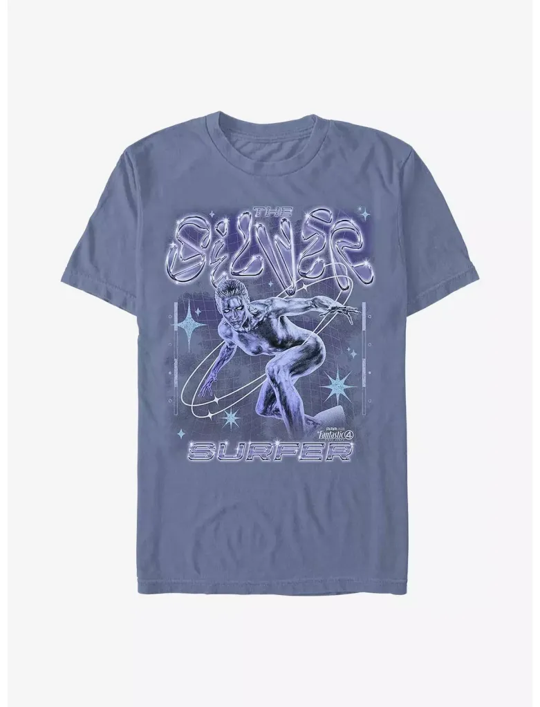 - Marvel The Fantastic Four: First Steps Silver Surfer Chrome Shine Garment Dye T-Shirt Hot Topic – Web Exclusive – $32.90