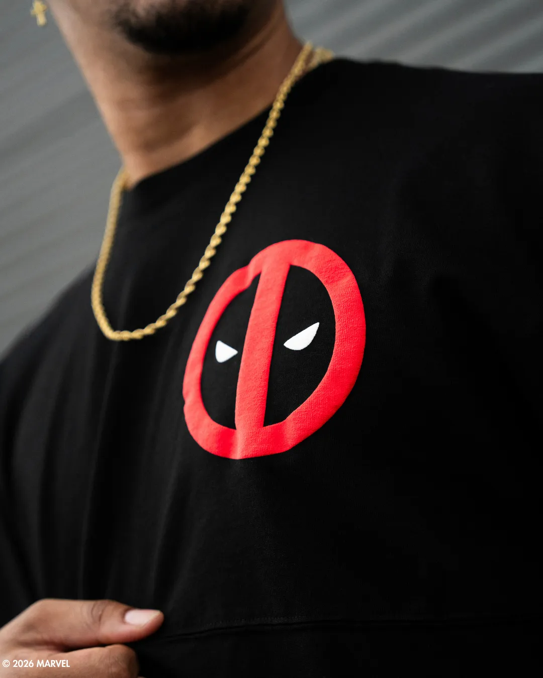 Spirit Jersey is also having some fun with April Pool’s Day with a trio of great Deadpool-themed shirts. The first is the clean and classic Marvel Deadpool Relaxed Logo Tee, which is a white shirt that features the Deadpool logo prominently on the front and the Deadpool mask logo on the back. The Deadpool Relaxed Logo Tee retails for $40.00.