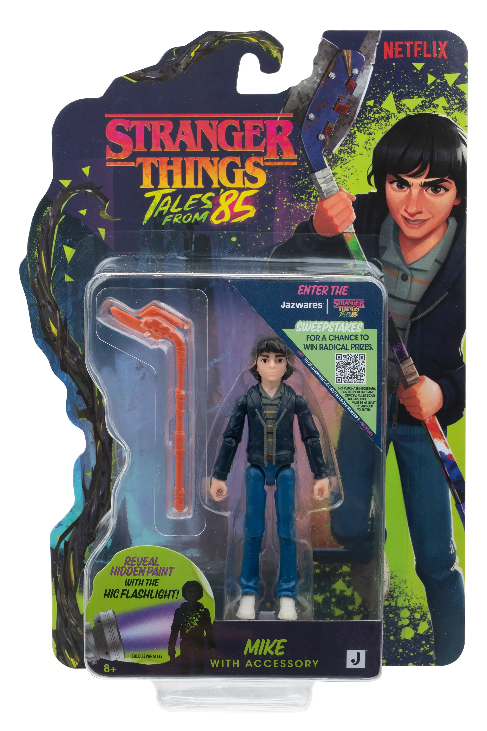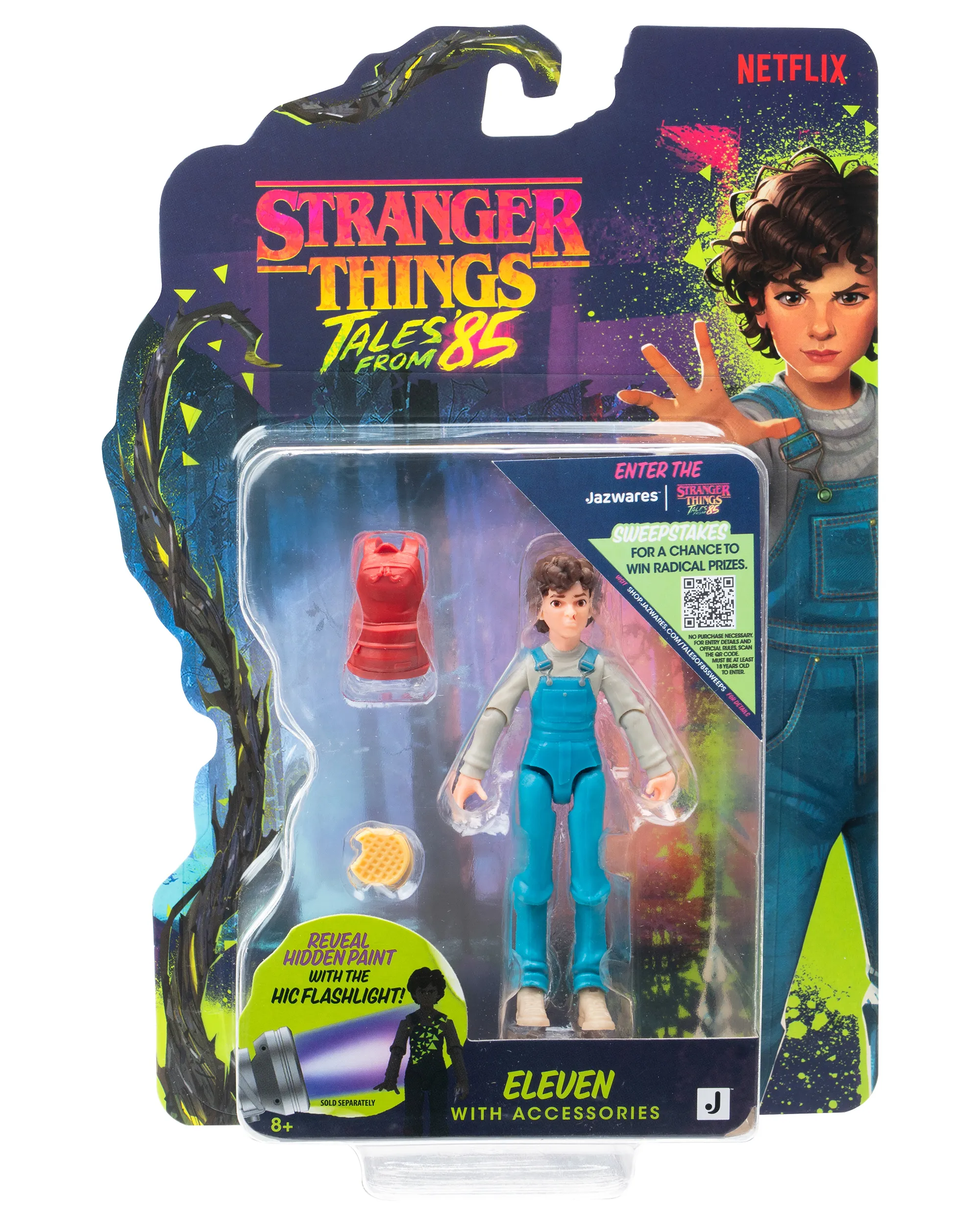 The last two figures are individual ones with one or two accessories. The first is Mike, who comes with one of the deadliest hockey sticks around, while Eleven comes with a waffle and what could either be armor or a backpack, but it’s hard to figure out which one it is from this angle. Both of these figures also have hidden paint that can be revealed with the HIC flashlight, even though they don’t have the flashlight included.