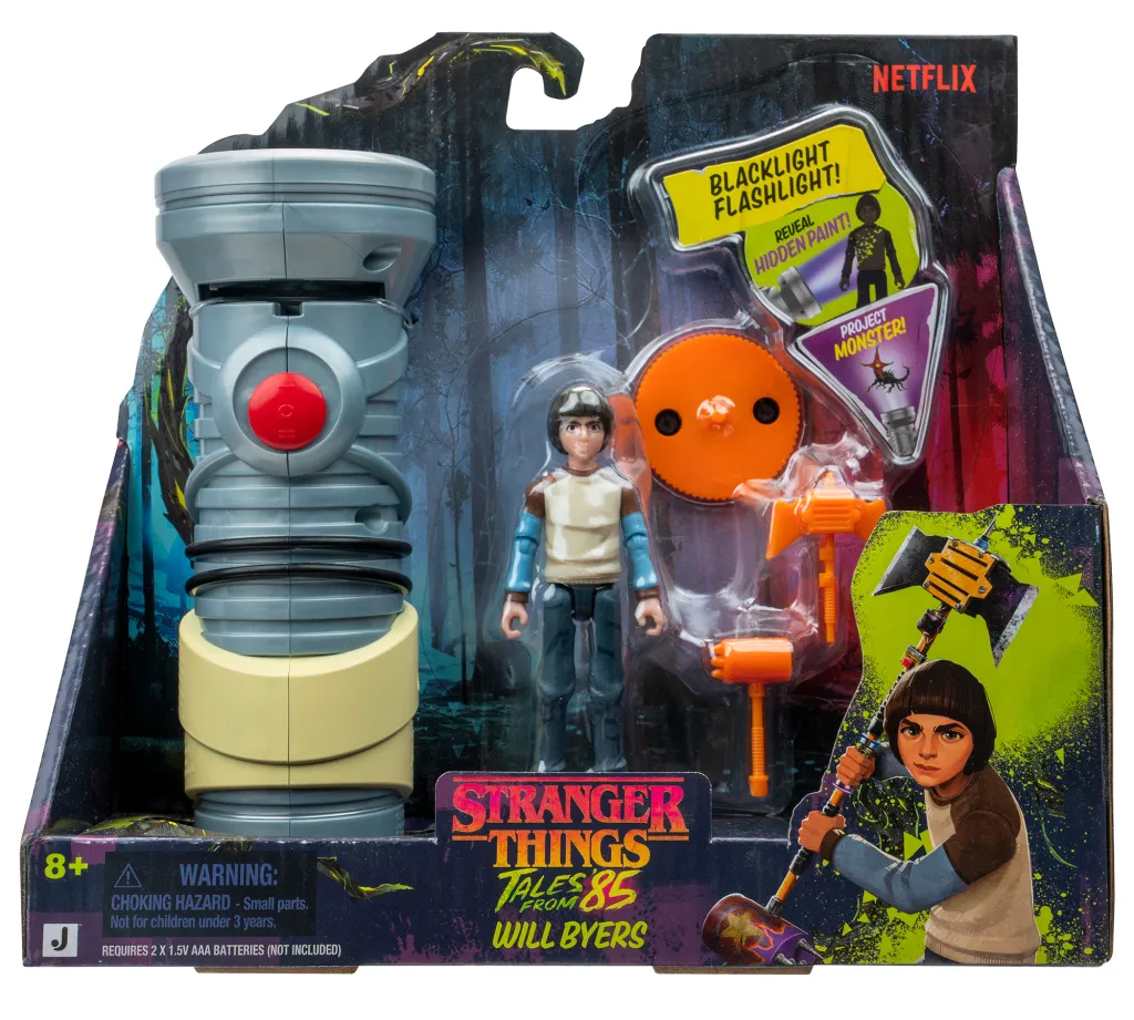 The other figure in this specific line is Will Byers. Byers comes with the HIC Flashlight and Blacklight, but the included disc projects a different monster onto a surface. Byers also comes with two different weapon accessories that can be used individually or combined to form an even deadlier weapon.