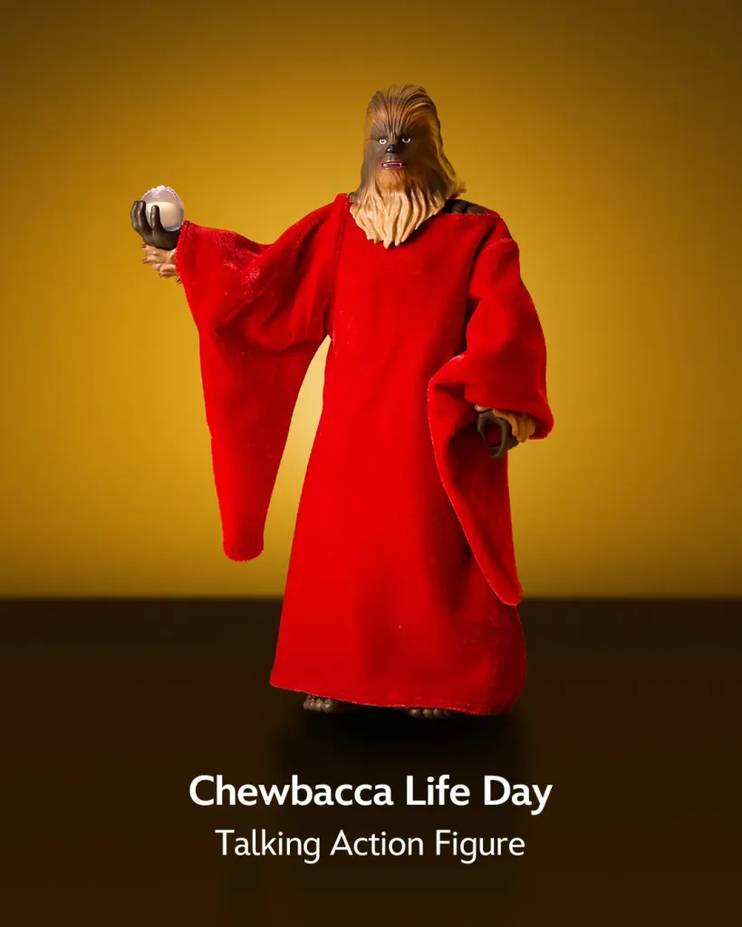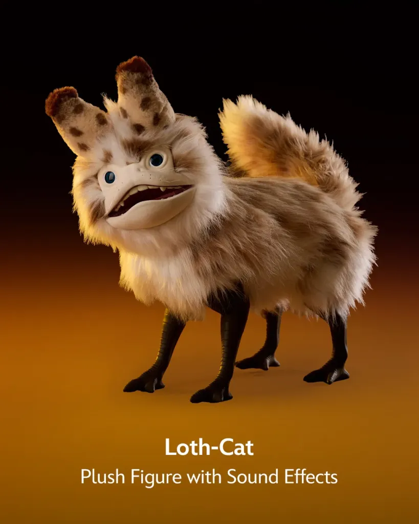 We’ll start with the Chewbacca Life Day talking action figure which is inspired by the traditional Wookie Life Day attire. In the Star Wars canon, the Life Day ceremony is held at the Tree of Life on the Wookiee homeworld of Kashyyyk. Disney notes that it will have a “talking” feature. The super detailed plush Loth-Cat figure will also feature sound effects. As you will see in the teaser pictures below, it looks really accurate and adorable.