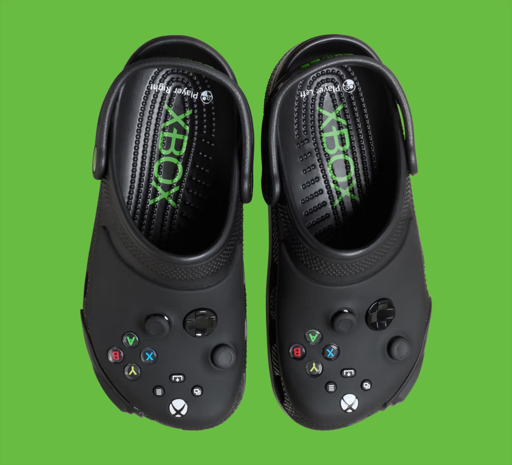 The Xbox Crocs are obviously inspired by the iconic controller design, and come complete with buttons and joysticks, “player left” and “player right” markings on the sole, and Xbox branding / logos. Unfortunately, you won’t be able to play games with your clogs as the controller, which seems like an oversight to us. We would have also liked to see a version inspired by “The Duke” controller for gamers with big feet. Maybe this is too much to ask, but they did just release The Grinch Crocs with tiny, creepy arms, so anything is possible.
