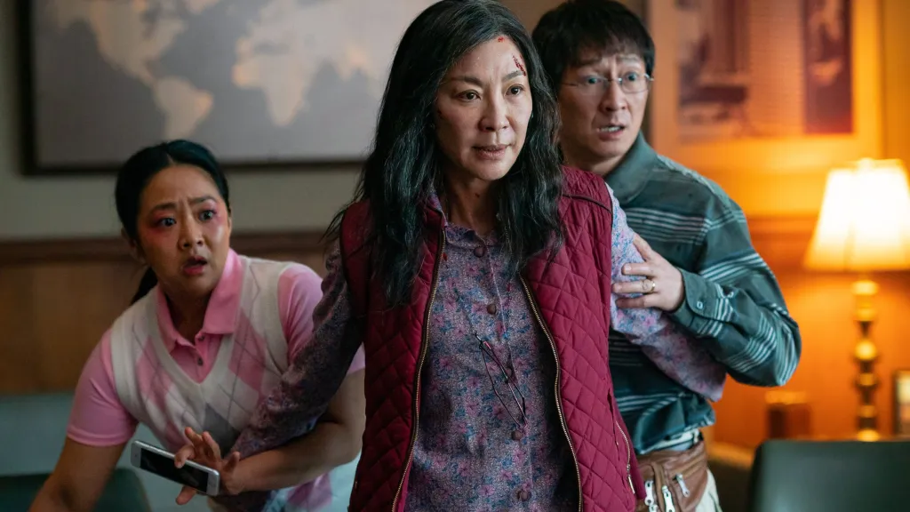 The core argument for Everything Everywhere All at Once‘s superiority as a multiversal narrative begins with its thesis, which is both simpler and more demanding than anything the MCU attempted. The Daniels use the multiverse not as a plot device for spectacle or villain logistics, but as a philosophical framework for one specific human problem: the paralysis of infinite possibility. Evelyn Quan Wang (Michelle Yeoh) is a middle-aged Chinese immigrant running a failing laundromat in Simi Valley, California, while contending with an IRS audit, a disintegrating marriage, and a daughter she cannot connect with. The multiverse, in this film, exists to confront Evelyn with every version of herself she did not become, and to force the question of whether any alternate path would have delivered meaning.