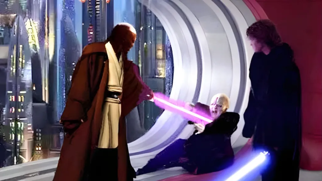 To many fans, Palpatine’s behavior is out of character โ he is not supposed to act like a helpless victim, and he is a strong fighter who shouldn’t have been disarmed. However, if Palpatine lost to Windu on purpose, that completely changes this scene, and the theory is plausible because Palpatine later is shown to have a second lightsaber that he didn’t try to use with Windu.